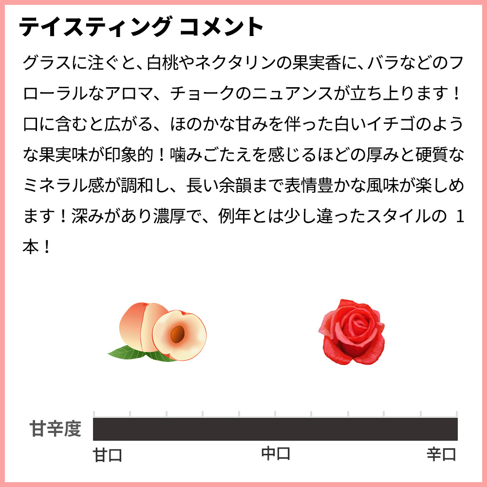 しかも自社畑100%のグラン・クリュ畑の最高畑のみから造られるプレステージ・シャンパーニュ (ピノ・ノワール56%にシャルドネ44%にオーク樽発酵の赤ワインを12%ブレンド) !しかも最低年数セラーで6年以上の間の眠り (熟成) につき、さらにデゴルジュのあと最低8ヶ月の熟成の後リリース! (ドサージュは7g/L) される究極最高級ロゼ!グラスに注ぐと、白桃やネクタリンの果実香に、バラなどのフローラルなアロマ、チョークのニュアンスが立ち上ります!口に含むと広がる、ほのかな甘みを伴った白いイチゴのような果実味が印象的!噛みごたえを感じるほどの厚みと硬質なミネラル感が調和し、長い余韻まで表情豊かな風味が楽しめます!深みがあり濃厚で、例年とは少し違ったスタイルの1本!完璧に熟成したヴィンテージ・シャンパーニュ!