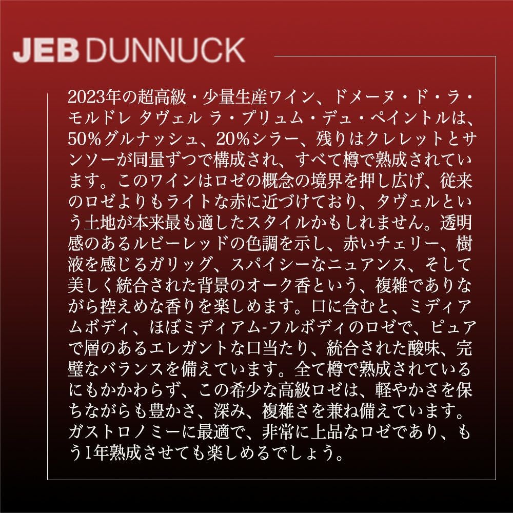 他の画像を見る タヴェル ロゼ ラ プリュム デュ パントル 2023 蔵出し超限定生産作品 ドメーヌ ド ラ モルドレ元詰 自然派 ロットナンバー入り 14.5%Tavel Rose La Plume du Peintre 2023 Domaine de La Mordoree ロゼ フランス 辛口 当店特別価格 ¥ 14,515 税込 在庫切れ 詳細を見る お気に入りに登録する