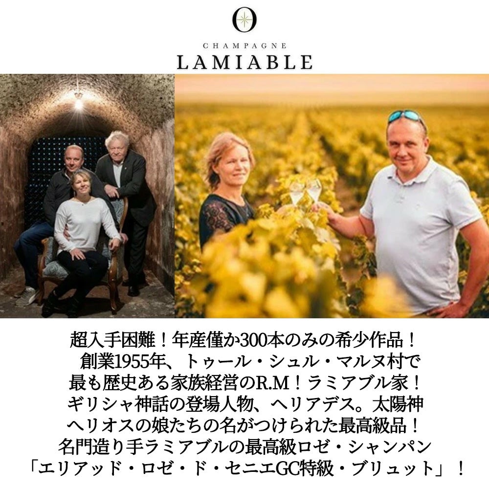 他の画像を見る ラミアブル シャンパーニュ エリアッド ロゼ ド セニエ グラン クリュ 特級 ブリュット 生産者元詰(ラミアブル家元詰) 正規品Lamiable Champagne Heliades Rose de Saignee Grand Cru Brut スパークリング シャンパン ロゼ フランス 辛口 当店特別価格 ¥ 12,519 税込 カートに入れる お気に入りに登録する