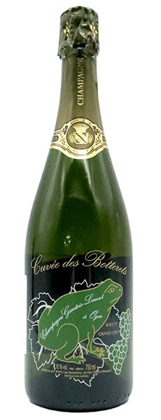 ボトルにエッチングされたカエルは「オジェ村のシンボル」で、この村を訪れると、軒先のあちこちでカエルをモチーフにした飾りやオブジェを見つけることができます。作品名「キュヴェ・デ・ボトレ(ボトレのキュヴェ)」の「ボトレ」は、「小さなカエル」というもともとの意味に加えて、「オジェ人」の愛称でもあります。