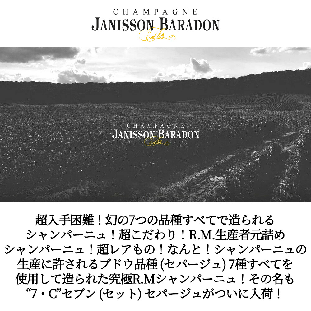 ジャニソン・バラドン・“7・C・(セット・セ)”・シャンパーニュ・ブリュット・NV(2016、2017)・蔵出し超限定作品・(シャンパーニュに許される7つブドウ品種すべて使用の究極シャンパーニュ)(1950年-2009年植樹)・R.M.生産者元詰(シリル・ジャニソン家)・ティラージュ2018年4月11日・ドザージュ2g/l・年産わずか1589本のみ・正規品