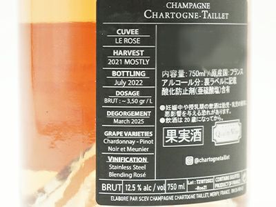シャルトーニュ・タイエ・シャンパーニュ・ロゼ・ブリュット・NV(2021主体)・RM・生産者元詰(アレクサンドル・シャルトーニュ家)・AOCシャンパーニュ・自然派・ビオロジック・228L樽醗酵&樽熟成・ドサージュ3.5g/L・(1970年植樹主体)・ティラージュ2022年7月&デゴルジュマン2025年3月・ワインアドヴォケイト誌驚異の91点&ワインスペクテイター誌92点&RVF誌2026年版3スターで17/20点&ヴィノス誌91点獲得ワイン・正規品