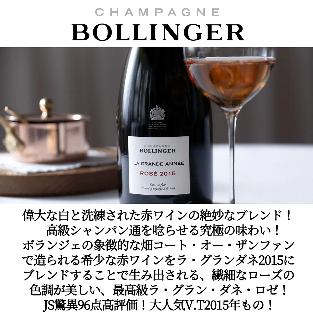 最高のヴィンテージのみ造られるボランジェ社最高峰“グラン・ダネ”の希少ロゼの待望グレートヴィンテージ[2015]年もの (アシェット・ガイド誌2024年版が17/20点&WAでは驚異の94点をつけるグレイトヴィンテージ) !