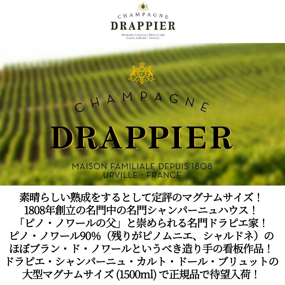 【大型ボトル】ドラピエ・シャンパーニュ・カルト・ドール・ブリュット・AOCシャンパーニュ・希少なマグナムサイズ(1500ml)・ジェームス・サックリング驚異の91点&バーガウンド90点&ワインスペクテーター誌90点高評価