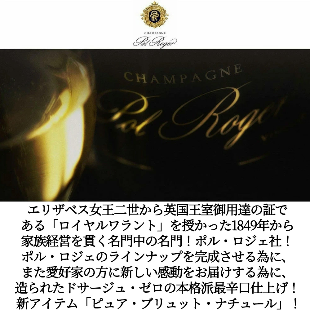 【ギフト箱入り】ポル・ロジェ・シャンパーニュ・ピュア・ブリュット・ナチュール・NV・AOCシャンパーニュ・正規代理店輸入品・ノン・ドザージュ