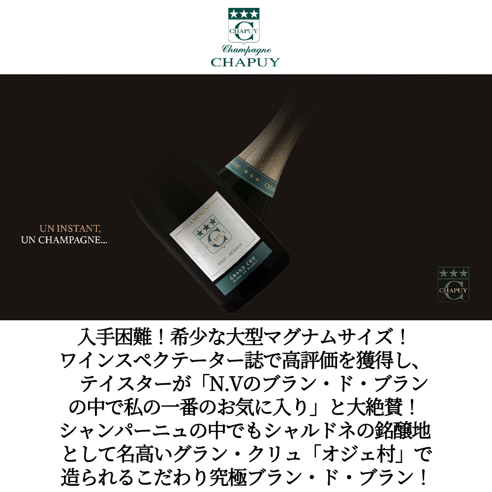 【大型ボトル】シャピュイ・シャンパーニュ・グラン・クリュ・特級・ブラン・ド・ブラン・ブリュット・レゼルヴ(グラン・クリュ・オジェ村100%のシャルドネ100%)・シャピュイ家・希少な大型マグナムサイズ・1500ml