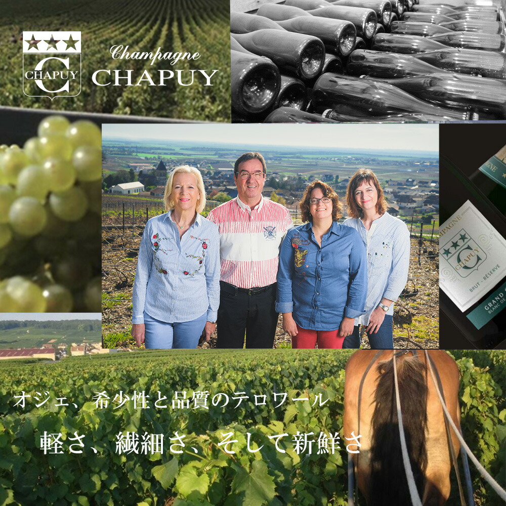 造り手は、シャンパーニュ地方でも特に優れたシャルドネを生み出す銘醸地、コート・デ・ブランのオジェ村に位置する家族経営のワイナリー!シャピュイ家はフランス革命の時代から既にオジェでワイン造りを行い、地元の市長も務めるなど、この地と関わりの深い一族!「最高級のシャンパーニュをお手頃な価格で」の経営理念の元、1952年より当時の当主セルジュによりシャンパーニュの生産がはじめられ、現在は息子のセルジュが後を継ぎ経営を行なっている銘醸!