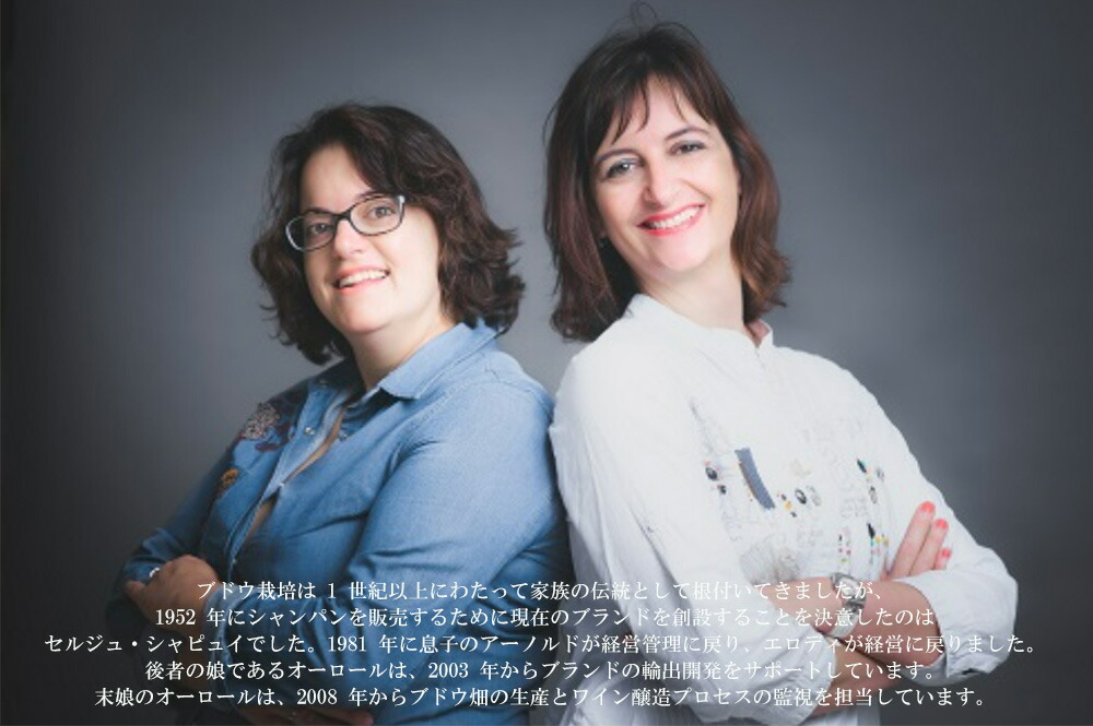 シャンパーニュ地方でも特に優れたシャルドネを生み出す銘醸地、コート・デ・ブランのオジェ村に位置する家族経営のワイナリーです。シャピュイ家はフランス革命の時代から既にオジェでワイン造りを行い、地元の市長も務めるなど、この地と関わりの深い一族です。「最高級のシャンパーニュをお手頃な価格で」の経営理念の元、1952年より当時の当主セルジュによりシャンパーニュの生産がはじめられ、現在は息子のセルジュが後を継ぎ経営を行なっております。