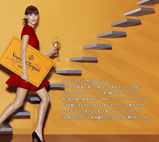 1772年の創業以来、2世紀以上も変わることなく大胆でスリリングなシャンパンであり続けるヴーヴ・クリコ。 常に最先端の感覚をまとい、真のラグジュアリーブランドとして人々を魅了するそのスタイルは、シャンパーニュ地方で今もラ・グランダム(偉大な女性)と呼ばれるマダム・クリコの「品質はただひとつ、最高級だけ」という信念に導かれています。