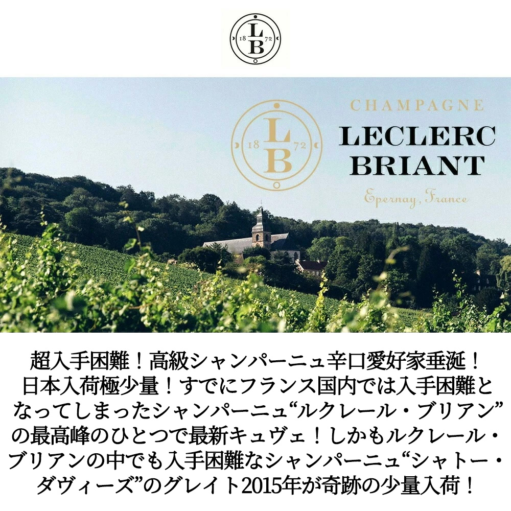 【豪華木箱入り】ルクレール・ブリアン・グラン・クリュ・特級・“シャトー・ダヴィーズ”・ヴィンテージ[2015]年・エクストラ・ブリュット・ブラン・ド・ブラン(シャルドネ種100%)・自然派・有機栽培・ビオディナミ(デメテール認証&ユーロリーフ認証)・特級シャルドネ100%・ティラージュ2016年6月&デゴルジュマン2025年6月・ドサージュわずか2.3g・(醸造家・エルヴェ・ジュスタン)・AOC(グラン・クリュ・ブラン・ド・ブラン)ミレジメ・シャンパーニュ・ベタンヌ&ドゥソーヴ誌2026年版4ツ星(96点(’14))&RVF誌2026年版Wスター&ジェイムスサックリング驚異の94点獲得・正規品・豪華木箱入り