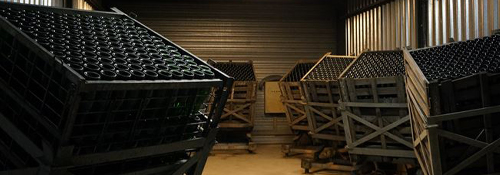 醸造には、冷水が循環するシステムのタンクを使用して、温度管理をしています。発酵後のワインは、外の保管庫に入れます。ここは、温度コントロールのシステムはありません。なぜなら、タンクに入れる時期には、すでに寒いので、その必要がないからです。熟成が終わったら、ジロパレットに入れて、1週間機械で回します。2~3日で澱を集められますが、念のため1週間置いています。キーゼルグール(珪藻土)を使い、ろ過しています。