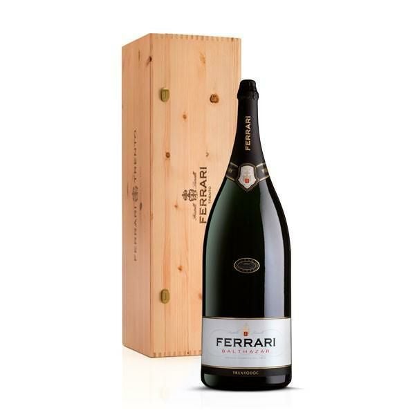 超入手困難!高級シャンパーニュ方式・辛口スプマンテ愛好家大注目!高級スプマンテファン大注目!フェッラーリファン大注目!圧巻の大型バルタザール(12000ml)12Lで遂に入荷!イタリア泡ファンで知らぬ人はいないといっても過言ではないイタリア・スプマンテの頂点に君臨するフェッラーリの伝統的なスプマンテ・ブリュット!1902年、創設者であるジュリオ・フェッラーリ氏がフランスのモンペリエからシャルドネの苗木を持ち帰って、イタリアのトレンティーノで植えたのが始まり!シャンパーニュと同じ瓶内二次発酵による製法、メトッド・クラシコのスプマンテのパイオニア的存在であり、シャルドネ品種を用いて初めてスプマンテを造った生産者であり、イタリアの本格的スプマンテの先駆者!さらには過去、ガンベロ・ロッソ誌では最高賞トレビッキエーリを驚異の16回獲得!数え切れない数々の受賞歴や専門誌、メディアが大注目!またイタリアの大統領官邸をはじめ、国外のイタリア大使館の公式晩餐会の食卓でも必ずサーヴされるスプマンテとしても有名!今や世界で愛飲される「フェッラーリ」!の超人気定番ブリュット!トレント周辺の丘陵地帯で栽培されたシャルドネ種100%(手摘み100%)使用!発酵温度20℃に管理されたステンレスタンクへと移され、自社培養酵母を使って12日間発酵!最低24ヶ月間の熟成でリリースされる究極スプマンテ!きめ細かい豊かな泡立ち。熟れたゴールデンデリシャスのりんご、野の花の濃い香り、ほのかにイーストを感じさせるフレーバー。フレッシュで、軽く心地よい熟れた果実の余韻が長く続くバランスのよい究極辛口スパークリングワイン!高級シャンパーニュ匹敵の圧巻の品質を誇るイタリア最高峰スパークリング!「キング・オブ・スプマンテ」“フェッラーリ”の超・超・超大型サイズ!究極バルタザール(12,000ml)が大型木箱入りで遂に入荷!