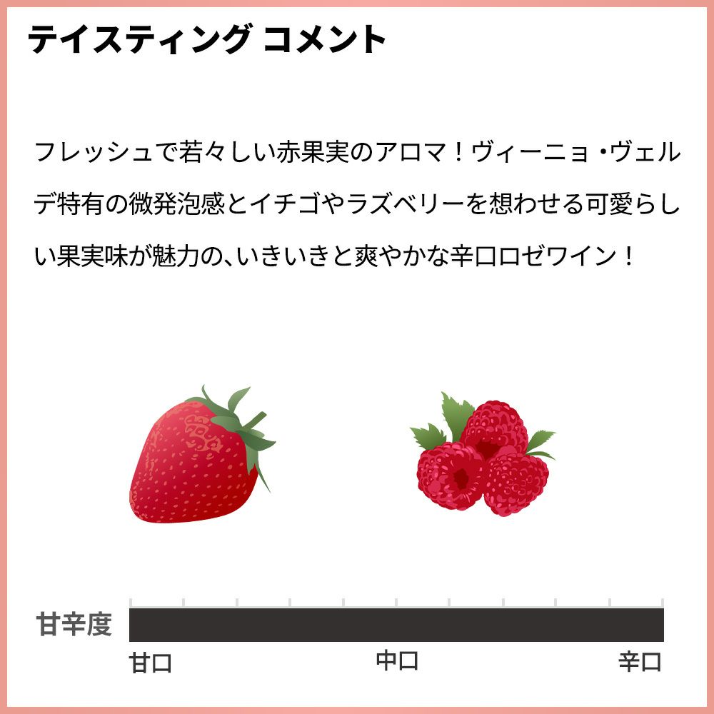 このベレヌス・ヴィーニョ・ヴェルデ・ロゼは、イチゴやラズベリーのような若々しい赤果実と爽やかな微発泡感!夏にピッタリの限定ロゼ!花崗岩、粘土質土壌からのヴィニャン40%、トウリガ・ナシオナル30%、エスパデイロ30%!残糖度6.8g/Lの辛口仕上げ!0.8気圧!フレッシュで若々しい赤果実のアロマ!ヴィーニョ・ヴェルデ特有の微発泡感とイチゴやラズベリーを想わせる可愛らしい果実味が魅力の、いきいきと爽やかな辛口ロゼワイン!