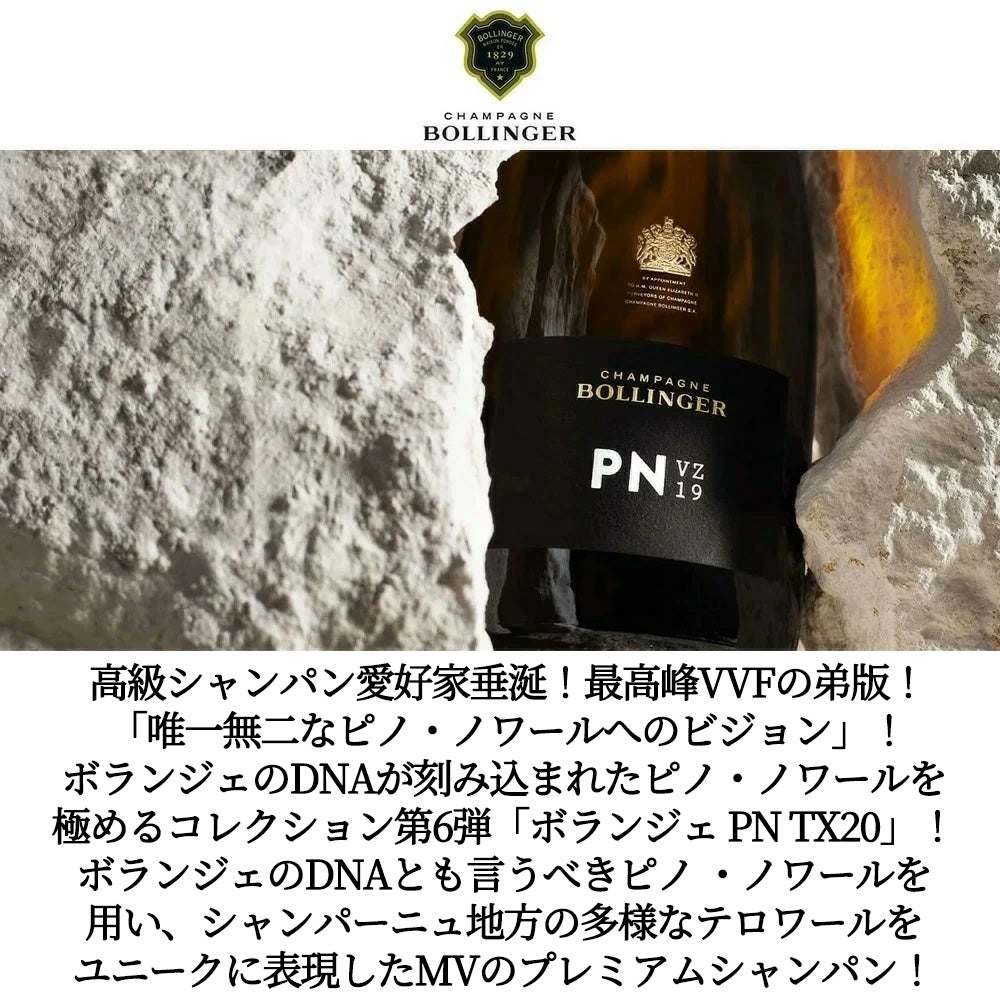 他の画像を見る 【箱入】ボランジェ シャンパーニュ PN TX 20 (ピー エヌ ティー エックス)ブリュット AOCシャンパーニュ 正規代理店輸入品BOLLINGER Champagne PN TX 20 Brut AOC Champagne 白ワイン スパークリング シャンパン フランス 辛口 当店特別価格 ¥ 17,556 税込 カートに入れる お気に入りに登録する