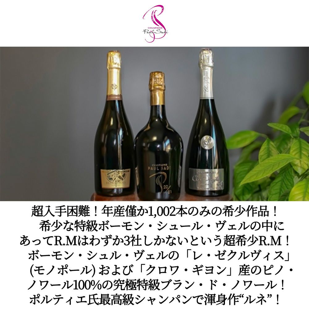 他の画像を見る ポール サディ グラン クリュ 特級 シャンパーニュ ルネ ブリュット ブラン ド ノワール ミレジム 2017 R M ヴィルジル ポルティエ家Paul Sadi Champagne Grand Cru Renee Brut Blanc de Noirs Millesime 2017 Virgile Portier R.M AOC Grand Cru Millesime 1002 スパークリング フランス 当店特別価格 ¥ 10,300 税込 カートに入れる お気に入りに登録する