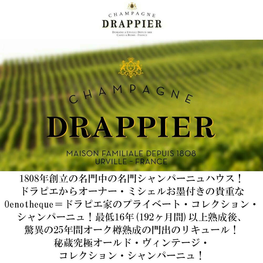 他の画像を見る 【箱入】ドラピエ シャンパーニュ“エノテーク”ミレジメ 2005 超限定輸入品 ドラピエ社 豪華ギフト箱入Drappier Champagne L’oenotheque Millesime 2005 Drappier 白ワイン シャンパン フランス 辛口 当店特別価格 ¥ 24,681 税込 在庫切れ 詳細を見る お気に入りに登録する