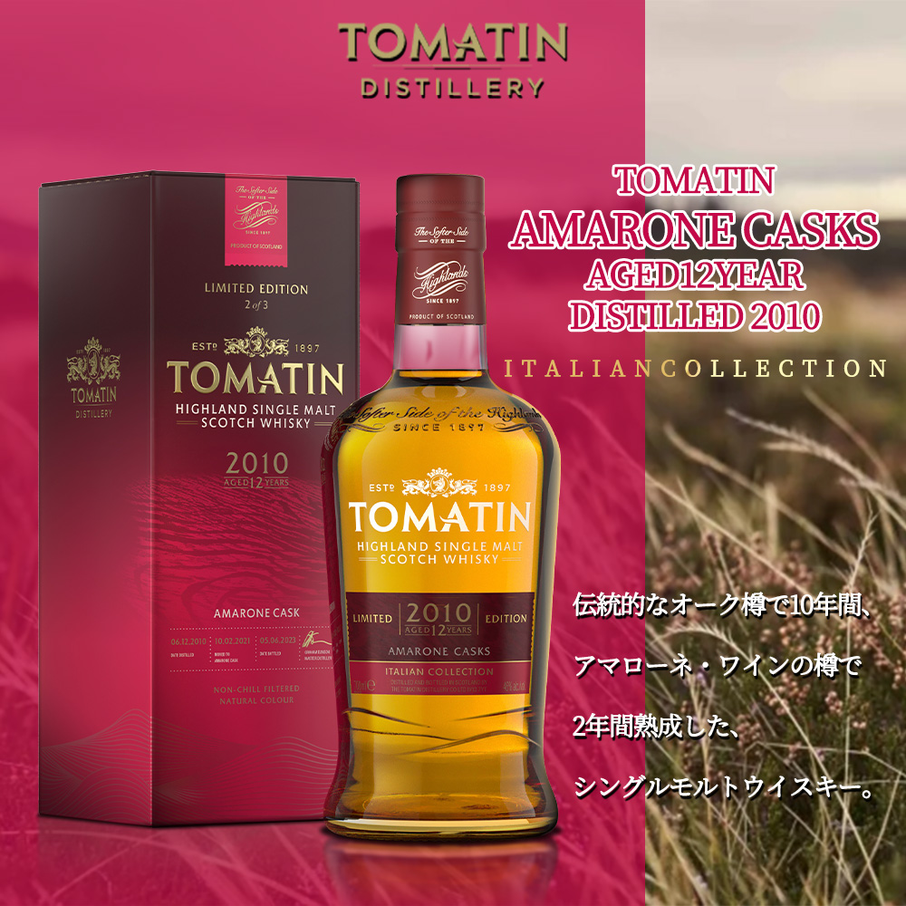 TOMATIN AMARONE CASKS AGED12YEAR DISTILLED 2010 ITALIAN COLLECTION HIGHLAND SINGLE MALT SCOTCH WHISKY NON CHILL FILTERED NATURAL COLOUR 700ml 46%