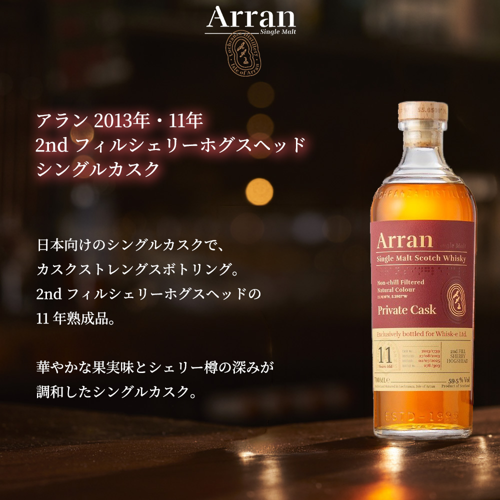 ARRAN DISTILLED2013 AGED11YEAR 2nd FILL SHERRY HOGSHEAD SINGLE CASK SINGLE MALT SCOTCH WHISKY NONCHILLFILTERED NATURALCOLOUR 700ml 59.5%
