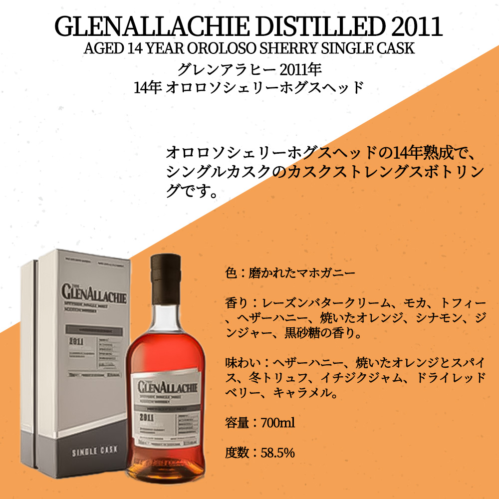 【正規品・箱入】グレンアラヒー[2011]年・[14]年・オロロソシェリーホグスヘッド・シングルカスク・カスクストレングス・スペイサイド・シングル・モルト・スコッチ・ウイスキー・700ml・58.5%