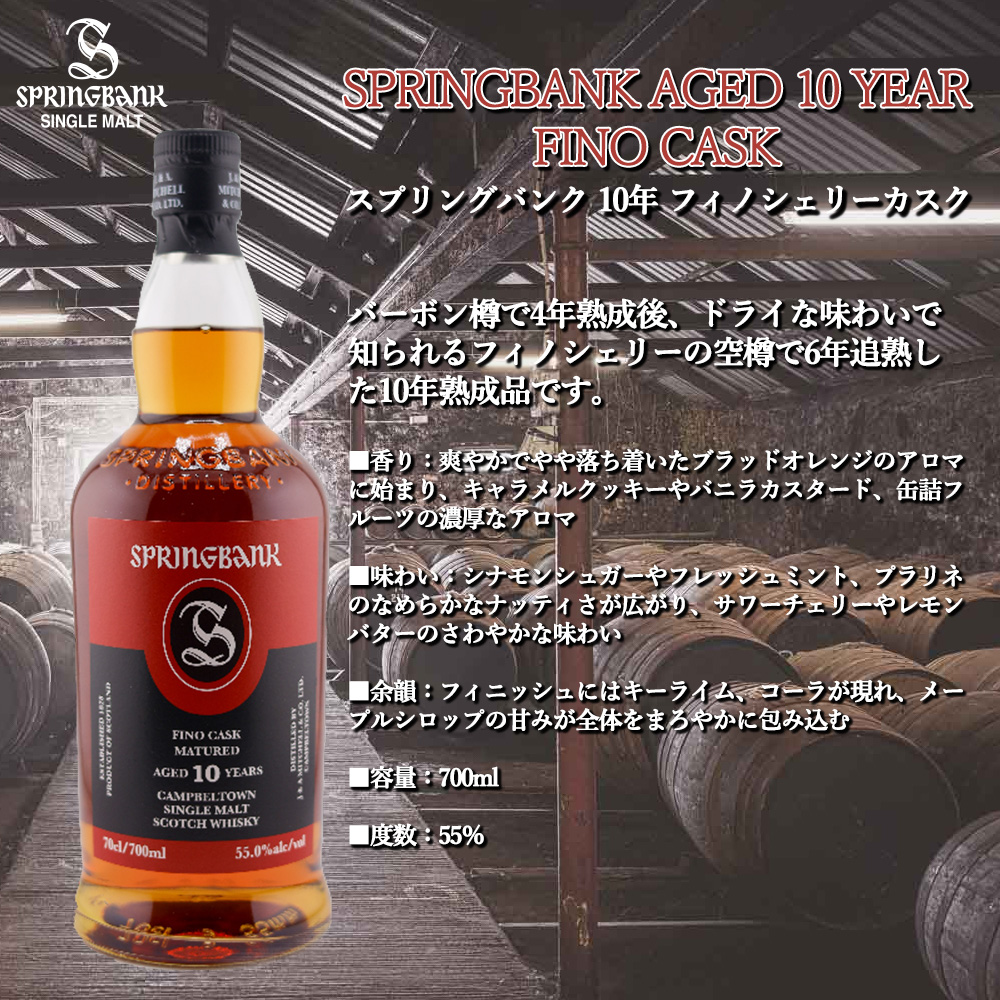 【正規品】スプリングバンク[10]年・フィノシェリーカスク・キャンベルタウン・シングル・モルト・スコッチ・ウイスキー・700ml・55%