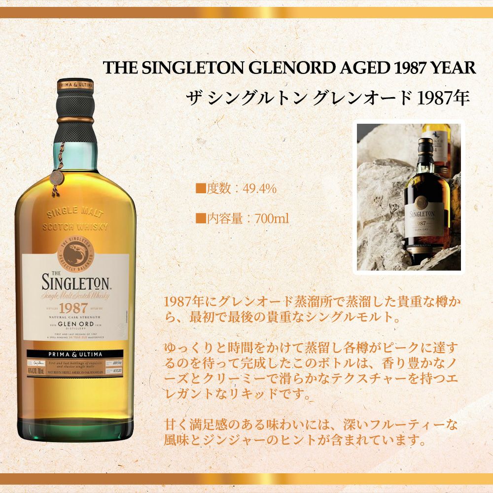 他の画像を見る 【送料無料】【正規品 箱入】ザ シングルトン グレンオード 1987年 シングル モルト スコッチ ウイスキー 700ml 49.4%THE SINGLETON GLENORD AGED 1987 YEAR SINGLE MALT SCOTCH ウイスキー 当店特別価格 ¥ 204,004 税込 カートに入れる お気に入りに登録する