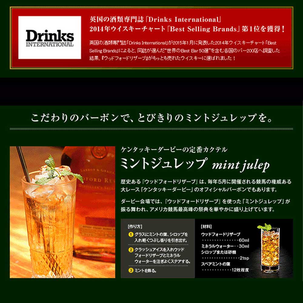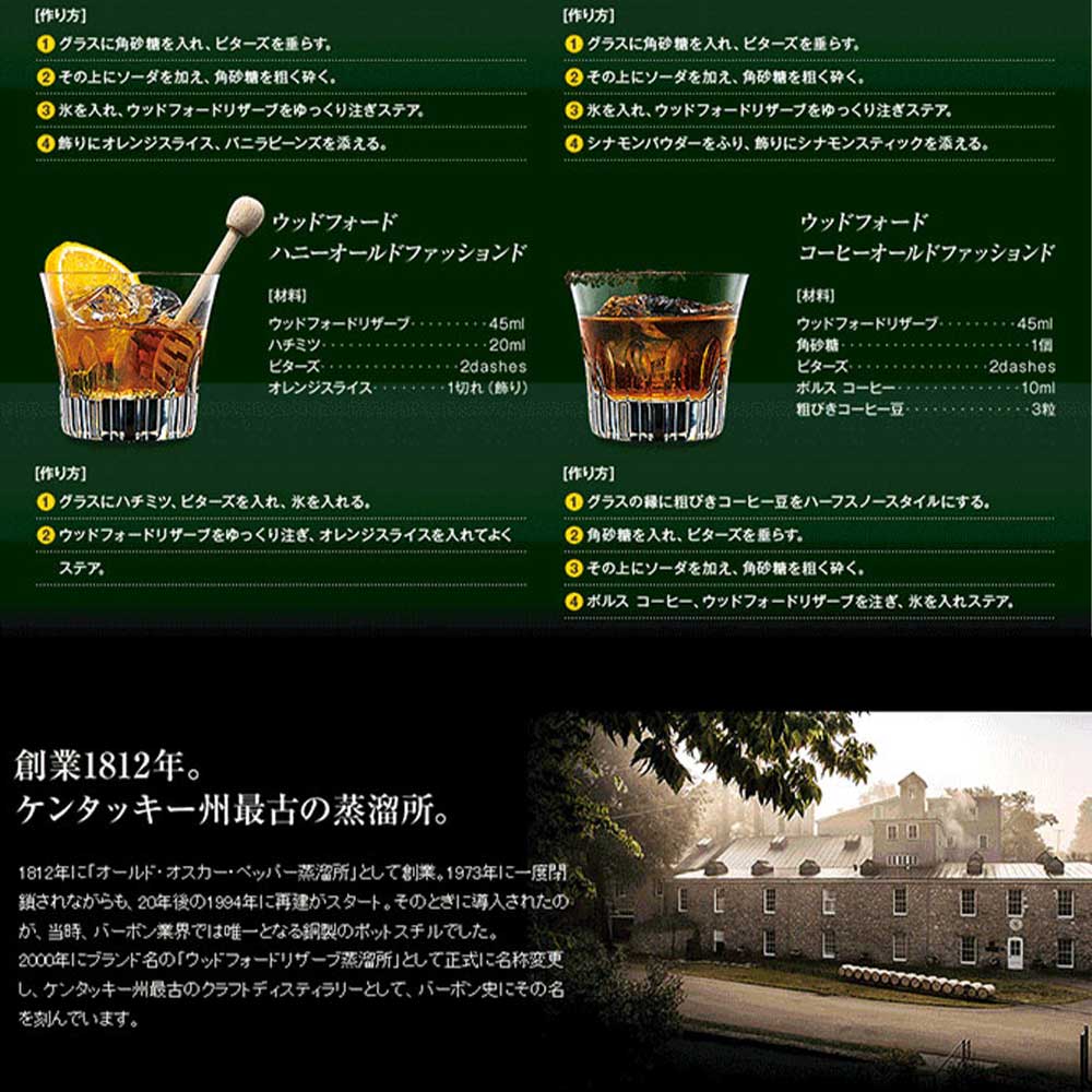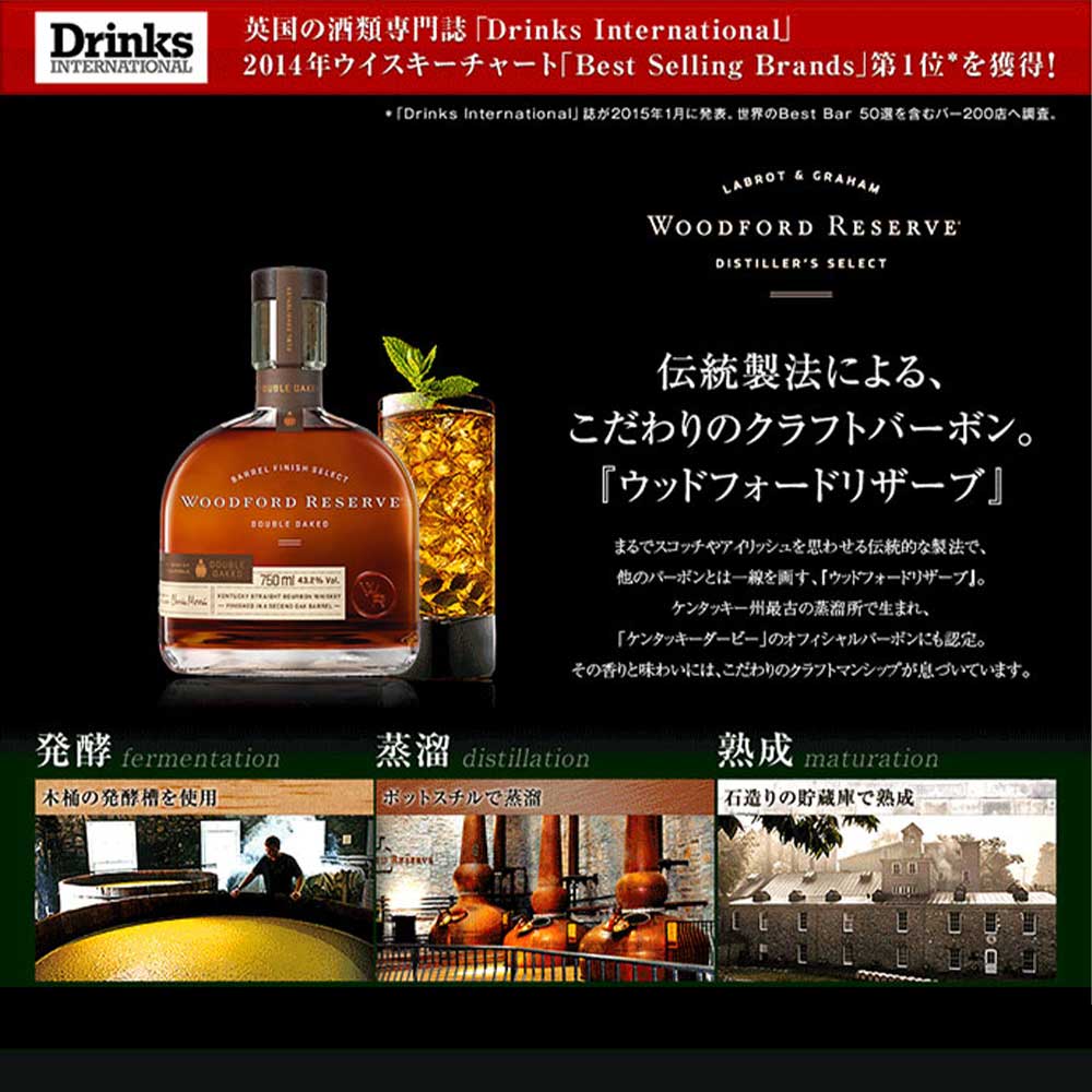 バードンウイスキー愛好家必見!!ケンタッキー州最古の蒸溜所!!ウッドフォードリザーブ蒸溜所のマスターディスティラーが創り出す、アルコール度数43度のスーパープレミアム スモールバッチ(少量生産)バーボン!!