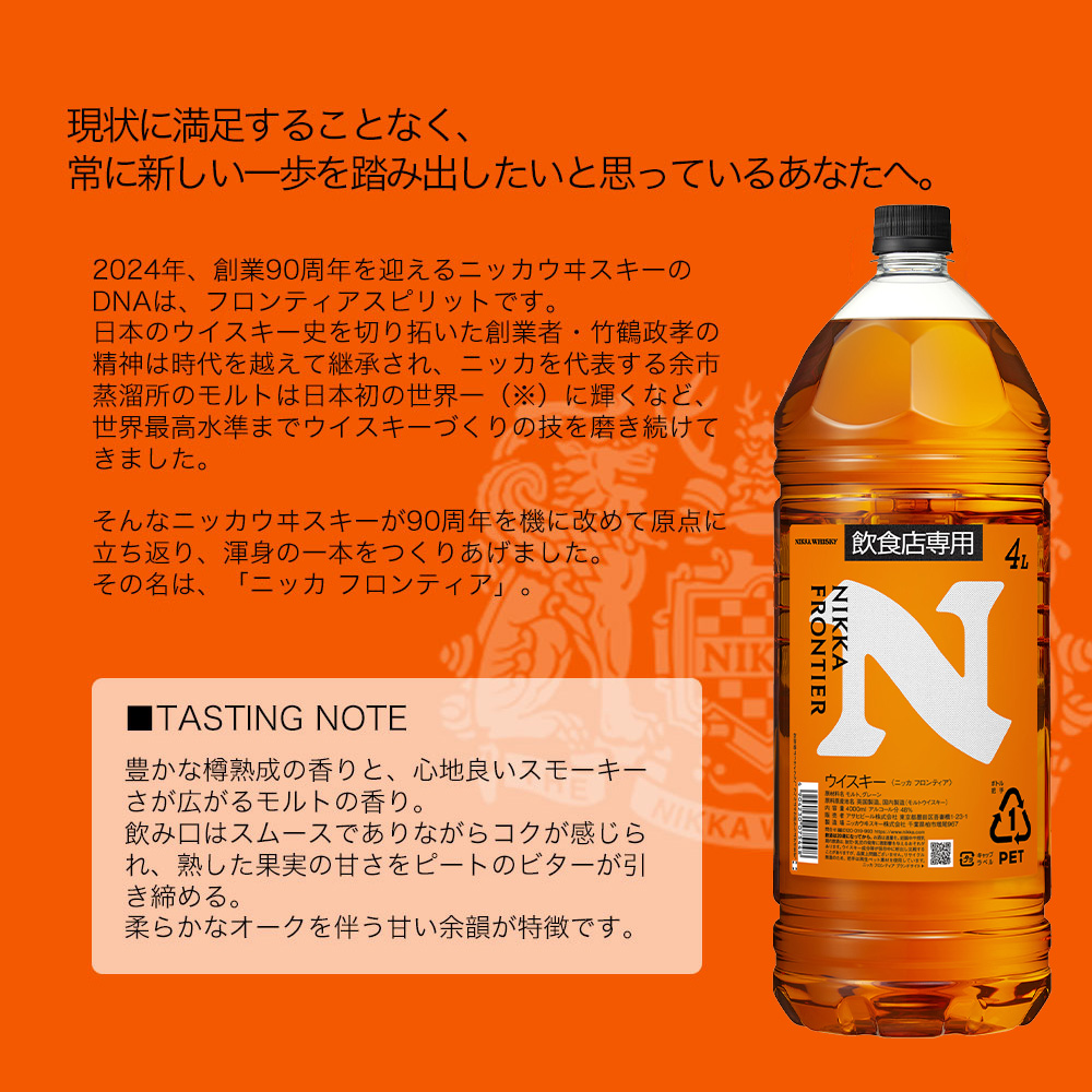 【送料無料/4本セット】ニッカ・ウイスキー・フロンティア・4000ml×4本・ケース[4本入り] ニッカウヰスキー・ニッカウイスキー・正規品・4000ml・48%