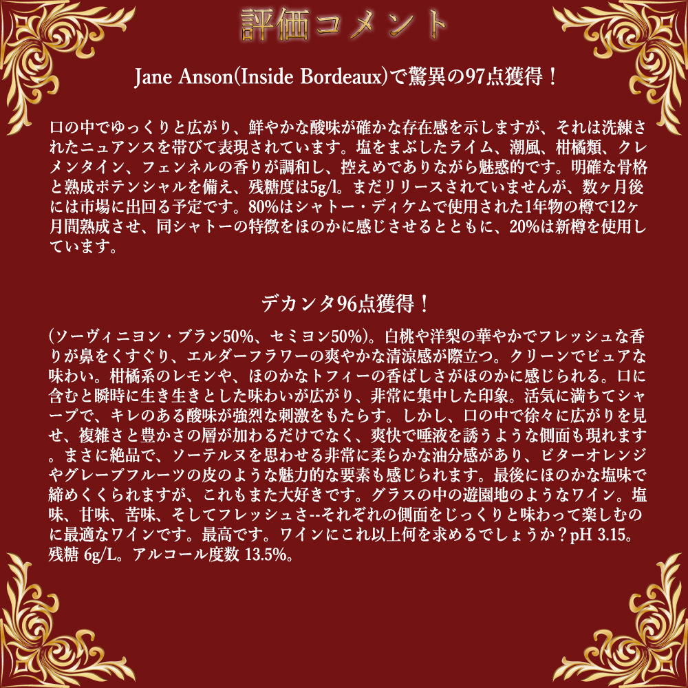 - 生産地フランス/ボルドー/ソーテルヌ/ AOCボルドー・セック