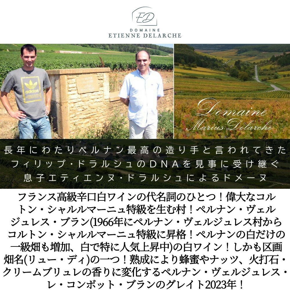 ペルナン・ヴェルジュレス・レ・コンボット・ブラン[2023]年・蔵出し限定作品・ドメーヌ・エティエンヌ・ドラルシュ元詰・AOCペルナン・ヴェルジュレス・レ・コンボット・ブラン・石灰質土壌の平均樹齢35年のヴィエイユ・ヴィーニュのシャルドネを12ヶ月熟成(2020年以前はドメーヌ・マリウス・ドラルシュ)・有機栽培・ビオロジック(ECOCERTの認証)
