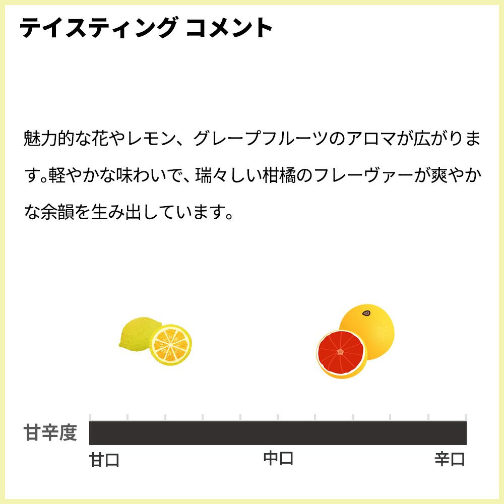 魅力的な花やレモン、グレープフルーツのアロマが広がります。軽やかな味わいで、瑞々しい柑橘のフレーヴァーが爽やかな余韻を生み出しています。もちろん、正規品の素晴らしい状態で限定入荷!