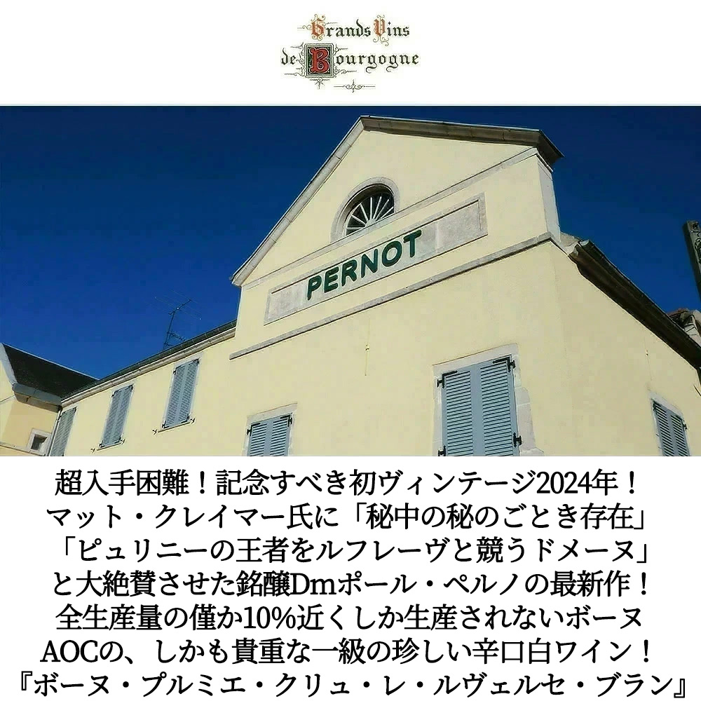 ボーヌ・プルミエ・クリュ・レ・ルヴェルセ・ブラン[2024]年・蔵出し限定品・ドメーヌ・ポール・ペルノ元詰・AOCボーヌ・プルミエ・クリュ・ブラン・記念すべき初ヴィンテージ作品