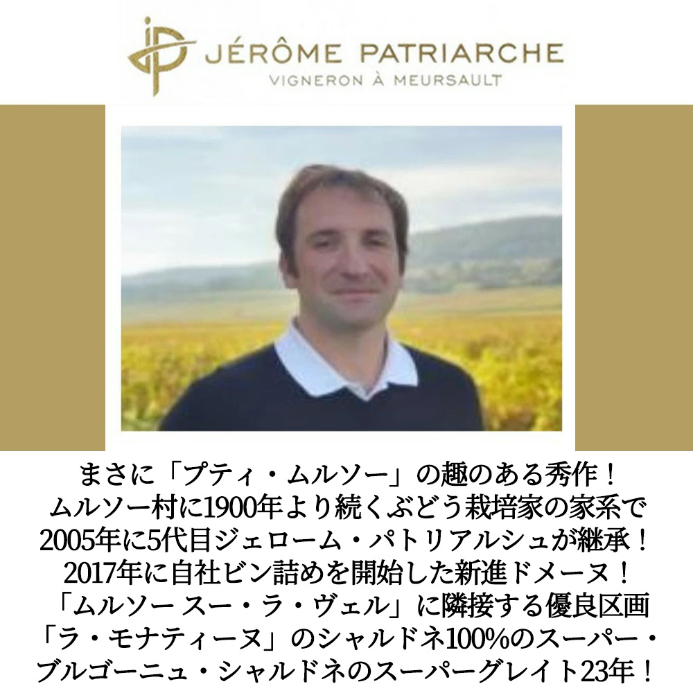 ブルゴーニュ・コート・ドール・ブラン・ラ・モナティーヌ[2023]年・蔵出し限定品・ドメーヌ・ジェローム・パトリアルシュ元詰・「ムルソー・スー・ラ・ヴェル」に隣接する優良区画「ラ・モナティーヌ」のシャルドネ100%・AOCブルゴーニュ・コート・ドール・ブラン