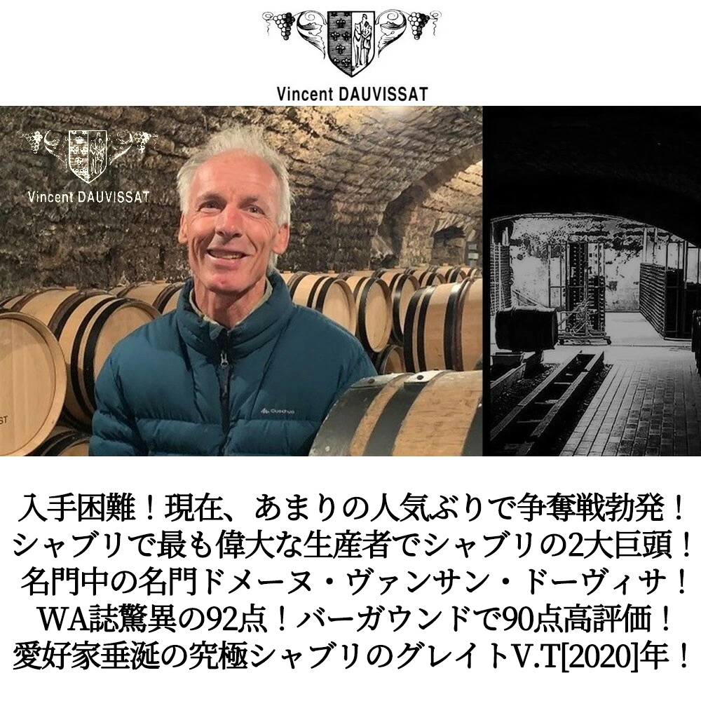 シャブリ[2020]年・ドメーヌ・ヴァンサン・ドーヴィサ元詰・蔵出し品(正規品)・AOCシャブリ・ワインアドヴォケイト驚異の92点&デカンタ93点&バーガウンド90点高評価