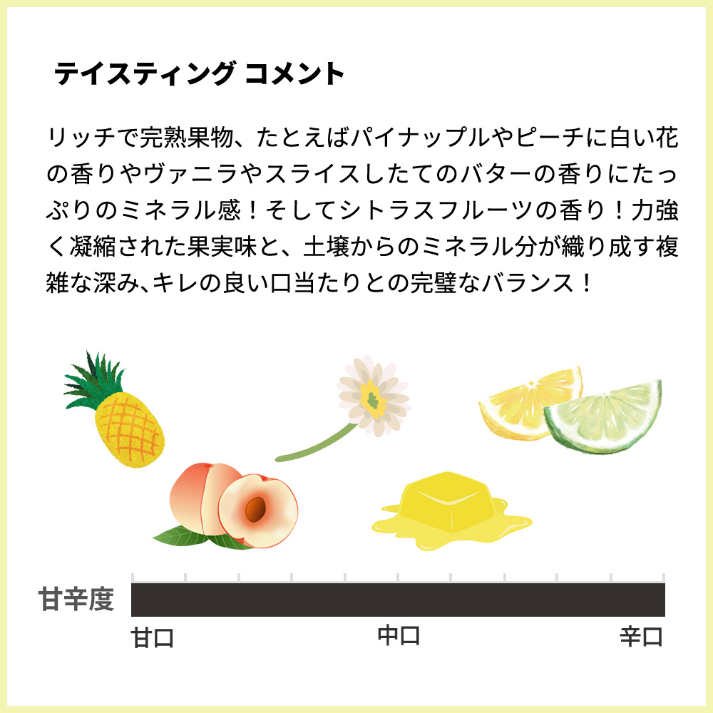リッチで完熟果物、たとえばパイナップルやピーチに白い花の香りやヴァニラやスライスしたてのバターの香りにたっぷりのミネラル感!そしてシトラスフルーツの香り!力強く凝縮された果実味と、土壌からのミネラル分が織り成す複雑な深み、キレの良い口当たりとの完璧なバランス!香りで感じた風味の全てが、味わいでも再発見させてくれる新鮮さと複雑なバランスが非常に素晴らしく、フィニッシュにも力強さが残る究極辛口白ワイン!最高峰シャブリ特級“レ・クロ”が、大人気スグレイトヴィンテージで高評価[2023]年で、正規品の蔵出しで限定少量入荷!