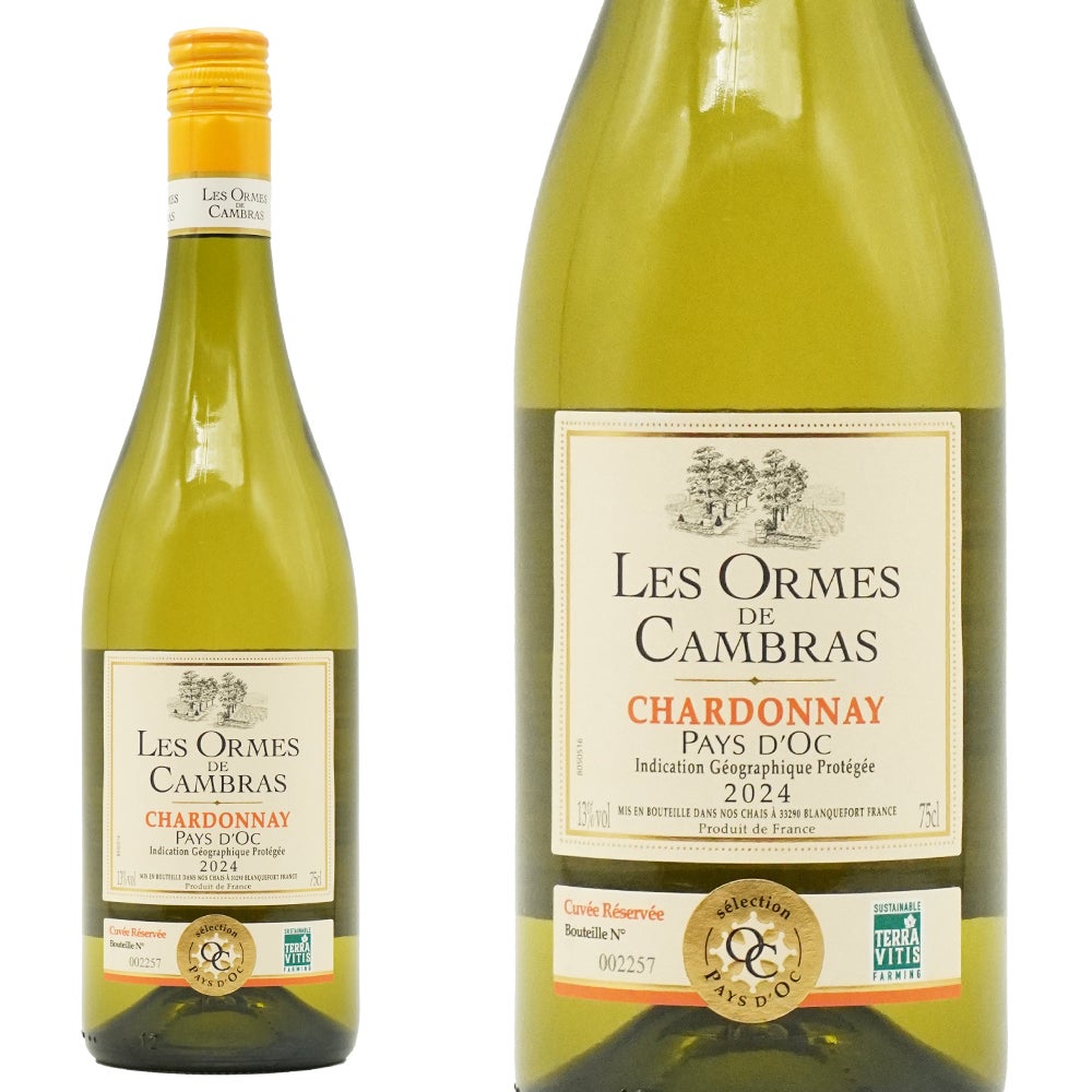 【ワインについて】南フランス愛好家大注目!シャルドネファン大注目!南仏の太陽が育てたフルーティーなフランスワイン!日本人の味覚に合う果実味溢れる飲みやすさを追求したフランスNo.1のカステル社がお届けする確かな品質!新発売のレ・ゾルム・ド・カンブラス!「レゾルム」とは楡の木を示す言葉で、昔からフランスに多く生息する樹!中世では楡の木で大聖堂や船が造られ、その後は楽器や鉄道にも使用されるなどフランスの人々にとって非常に馴染み深く、身近な存在!また、「カンブラス」は南仏の典型的な語感を持つ言葉で、伝統的な建築様式の農家をイメージして造られた造語!「レ・ゾルム・ド・カンブラス」は、明るい南仏の空の下で、人々がその木陰に集い、わきあいあいと大きな木のテーブルを囲むようなイメージで造られた、"上品かつ親しみやすい味わいのワインを日常的に愉しんでいただきたい"という、造り手の思いが込められたワイン!しかもレ・ゾルム・ド・カンブラスのために、特別にブレンドされたキュヴェであるキュヴェ・レセルヴでラベルには1本1本ロットナンバー入り!このワインでシャルドネ・デュ・モンド(金賞)&ヴィナリス・インターナショナル・シルバー(銀賞)!熟した黄色いリンゴや黄桃を思わせる香り!ほどよい厚みのある柔らかな果実味となめらかな酸味が特徴のバランスの良い味わいの辛口白ワインが金賞受賞で待望入荷!