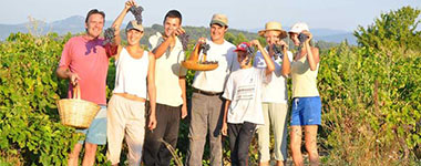 ガリグが生い茂る畑は粘土石灰質土壌で、除草剤・化学肥料は使用せず、ブドウの木の畝(うね)を耕し(雑草を除く意味と、表面の根を切って真ん中の太い根がさらに深く張るようにするため)、堆肥を使用しています。テロワールの味を最大に引きだすようブドウの根が地中深く張るような栽培を心がけています。ジュリアン兄弟は「私たちのドメーヌでは、ブドウの樹が自分自身にバランスの良いように実をつけるため収量は問題にならない」と言い、房の数を減らすため手を加えることはありません。