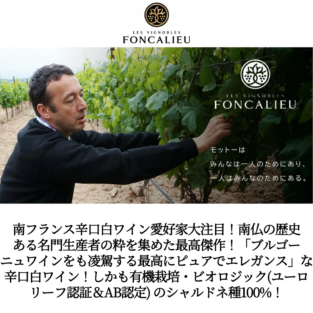 南フランス辛口白ワイン愛好家大注目!南仏の歴史ある名門生産者の粋を集めた最高傑作!「ブルゴーニュワインをも凌駕する最高にピュアでエレガンス」な辛口白ワイン!しかも有機栽培・ビオロジック(ユーロリーフ認証&AB認定)のシャルドネ種100%!