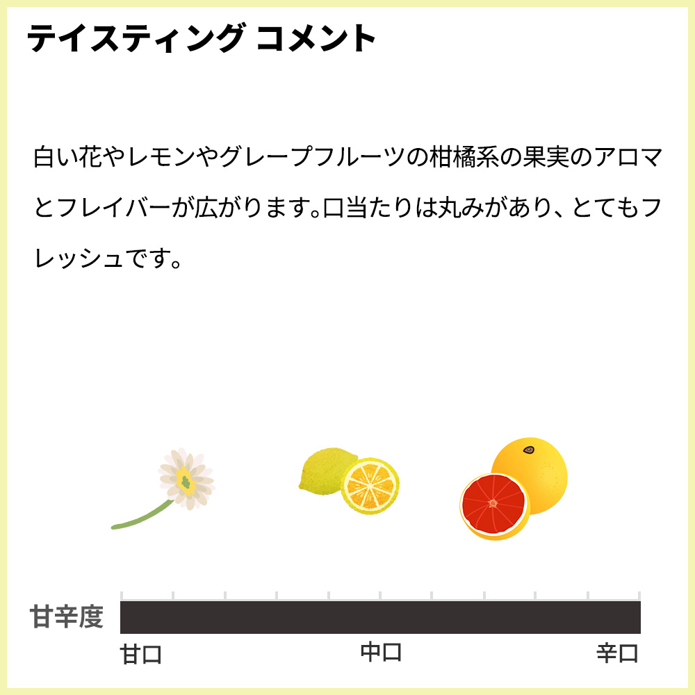 白い花やレモンやグレープフルーツの柑橘系の果実のアロマとフレイバーが広がります。口当たりは丸みがあり、とてもフレッシュです。!日本への入荷わずか108本のみの希少クローズ・エルミタージュ・白が限定で蔵出し作品で限定少量入荷!