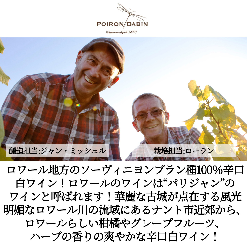 このポワロン・ダバン・ソーヴィニヨンブラン[2024]年・蔵出し作品・ドメーヌ・ポワロン・ダバン元詰(ジャン・ミッシェル&ローラン・ポワロン家兄弟)・ソーヴィニヨンブラン種100%はGP Val de Loire。ソーヴィニヨン・ブラン100%。シャトー・テボー村に1.5ha。花崗岩質・シスト(片岩)質土壌。平均樹齢15年。収量は50hl/ha。コンクリート製タンクで発酵後、10ヵ月間シュール・リー熟成で造られます。