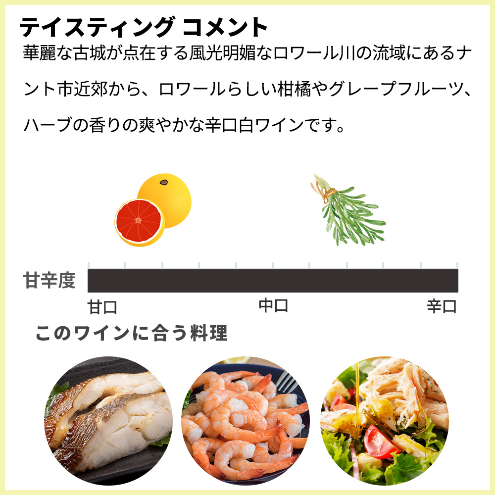 グリルした魚、シーフード、サラダなど軽い料理と合わせやすいタイプです。もちろん現地のセラー数ヶ月前の蔵出し品で極少量入荷!(ロワール地方のソーヴィニヨンブランの価格高騰のおり、このワインのようにお手頃価格のロワールの産ソーヴィニヨンブランが飲食店様中心に人気急上昇中!)