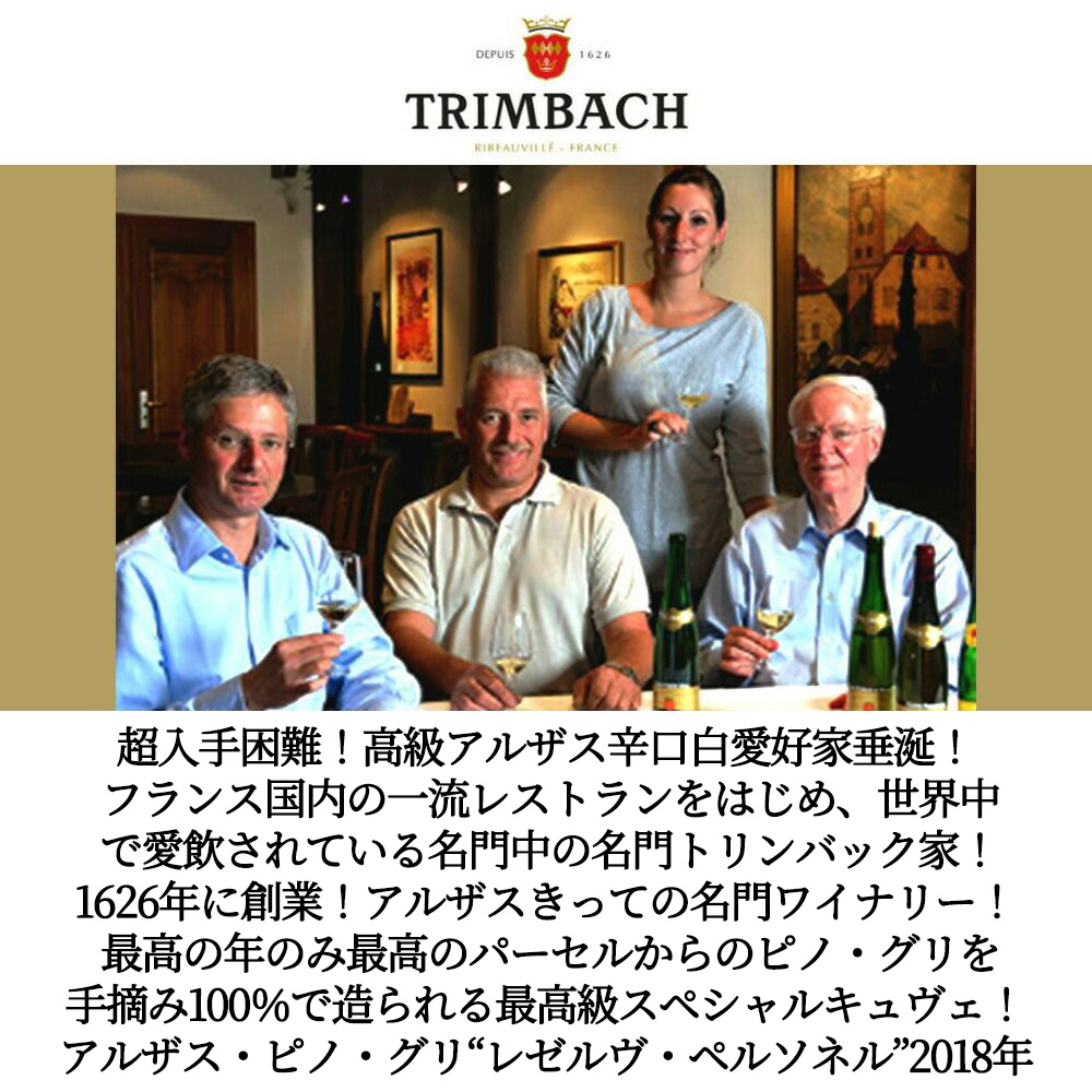 トリンバック・アルザス・ピノ・グリ・“レゼルヴ・ペルソネル”[2018]年・超限定生産品・蔵出し限定品・自社畑100%・手摘み100%・最高の年のみリリース・ドメーヌ・トリンバック家元詰・R.パーカー満点5つ星生産者・ワインエンスージアスト誌94点高評価・正規代理店輸入品