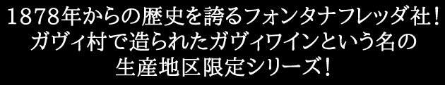 イタリア ピエモンテ辛口白ワインファン注目!1878年から歴史のある造り手!一世紀以上にわたりバローロを造り続け、伝統的バローロ造りのリーダー的存在!のフォンタナフレッダによるDOCGの辛口白ワイン!ガヴィの王様!「ガヴィ村で造られたガヴィワイン」という名の生産地区限定シリーズ!ミネラルや青りんご、レモンのようなフレッシュな香り。レモンをしぼったミックスフライや生ガキなどにぴったり!の究極辛口白ワインが少量入荷!