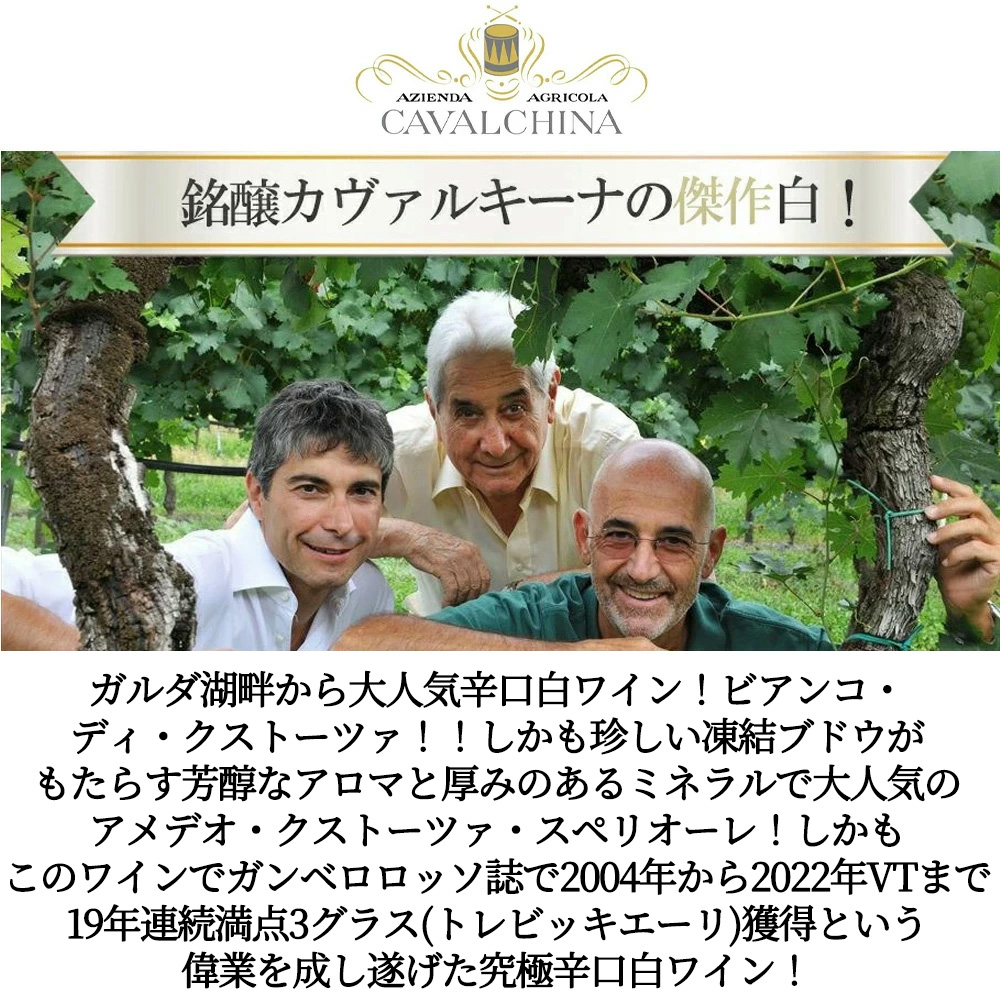 大人気イタリア・ヴェネト州大人気樽熟辛口白ワイン愛好家大注目!ガルダ湖畔から大人気辛口白ワイン!DOCクストーツァの生みの親である造り手によるビアンコ・ディ・クストーツァDOC!!しかも珍しい凍結ブドウがもたらす芳醇なアロマと厚みのあるミネラルで大人気のアメデオ・クストーツァ・スペリオーレ!(畑やセラーでの探求を重ねた、力強く、しかもバランスがとれた、ピオーナの哲学を最も表現しているレストラン様でも大人気辛口白ワイン)しかもなんと!このワインでガンベロロッソ誌で2004年からこの2022年VTまで19年連続満点3グラス(トレビッキエーリ)獲得という偉業を成し遂げた究極辛口白ワイン!ヴェローナの多くのレストランでもオンリスト!の人気白ワイン!