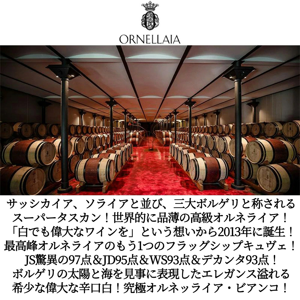 オルネッライア・ビアンコ[2022]年・蔵出し限定品・自社畑100%・手摘み100%(15kgカゴ)・オーク樽にて澱と共に10ヶ月熟成・テヌータ・デッロルネッライア(テヌータ・デル・オルネッライア)元詰・IGTトスカーナ・ジェームス・サックリング驚異の97点&ジェブ・ダナック95点&ワインスペクテーター93点&デカンタ93点&ヴィノス92点・正規品