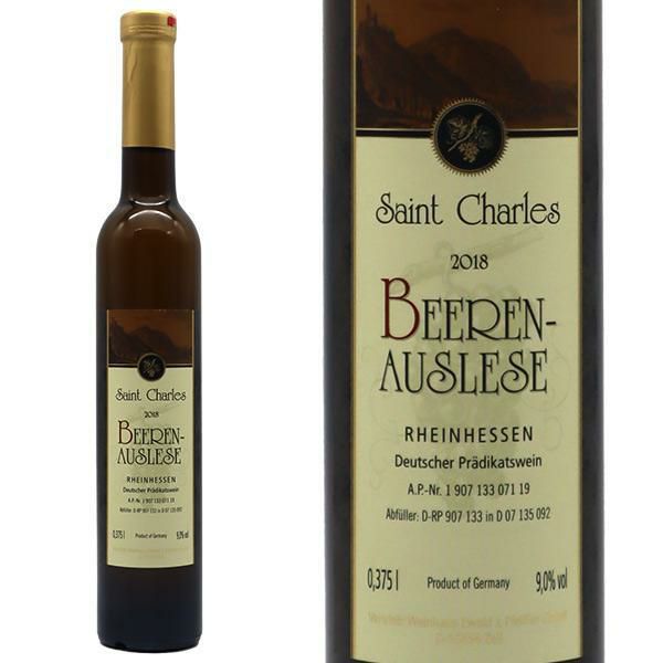 このオルテガ種40%にリースリング種30%、フクセルレーベ種30%をステンレスタンクにて約3ヶ月間熟成で造られるセント・チャールズ・ベーレンアウスレーゼ・ラインヘッセンは、輝きのある淡い黄金色!アプリコット、ピーチの濃密でフルーティな香りと、蜂蜜やシロップ漬けした果実の甘美で濃縮感ある香り!口当たりは柔らかく、天然果実の凝縮した甘味に、丸みのある酸味が心地よい極甘口のデザートワイン!がリーズナブルな価格で限定少量入荷!