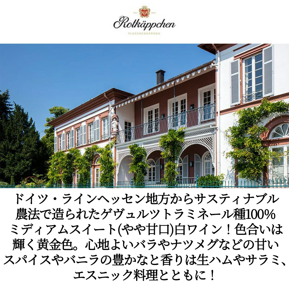 「サスティナブル農法!」で造られたラインヘッセンのゲヴュルツトラミネール種100%やや甘口ワイン!