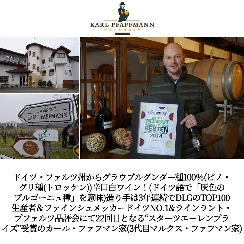 カール・ファフマン・グラウブルグンダー・トロッケン[2023]年・ヴァイングート・カール・ファフマン家(3代目・マルクス・ファフマン家) グラウブルグンダー種100%(ピノ・グリ種)・QbA・3年連続でDLGのTOP100生産者&ファインシュメッカードイツNO.1に選出&ラインラント品評会にて22回目となる“スターツエーレンプライズ”受賞・(ドイツ・ファルツ州・辛口・白ワイン)