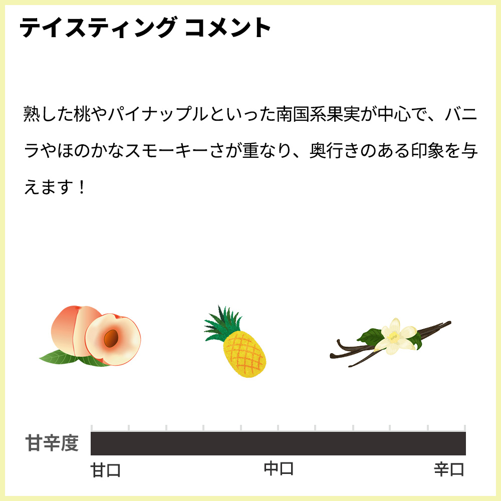 香りは熟した桃やパイナップルといった南国系果実が中心で、バニラやほのかなスモーキーさが重なり、奥行きのある印象を与えます!口当たりは滑らかで、濃厚な果実味が広がりつつ、まろやかな酸味が全体を引き締め、重すぎずバランスの良い仕上がりです!樽由来の香ばしさが控えめに感じられることで、リッチさと飲みやすさが両立しています!コスパ抜群の究極スパニッシュ辛口白ワイン!