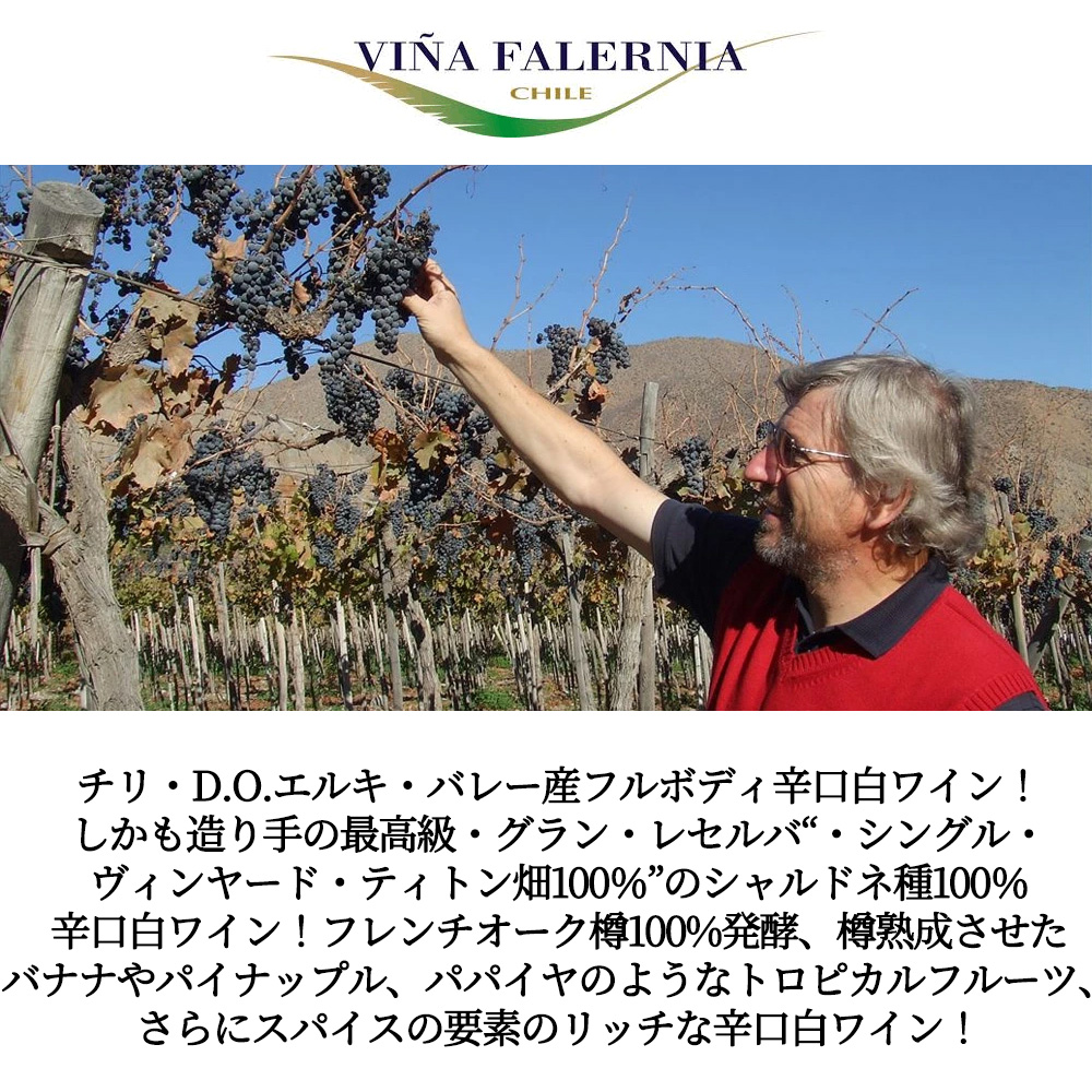 ビーニャ・ファレルニア・シャルドネ・グラン・レセルバ・“シングル・ヴィンヤード・ティトン”[2023]年・(シングル・ヴィンヤード・ティトン100%)・ビーニャ・ファレルニア元詰・D.O.エルキ・バレー・重厚ボトル・フレンチオーク樽100%発酵&樽で約11ヶ月熟成・シャルドネ100%・フルボディ・辛口・白・13.5%