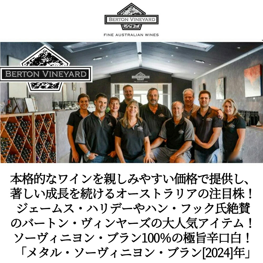 メタル・ソーヴィニヨン・ブラン[2024]年・バートン・ヴィンヤーズ・(醸造家ジェームス・チェッカート氏)・オーストラリア(サウスイースト・オーストラリア)・メタリック・ラベル・アルコール度数12.5%・G.I.パッドサウェー・リヴァリーナ・ワイン・ショウ2024金賞受賞